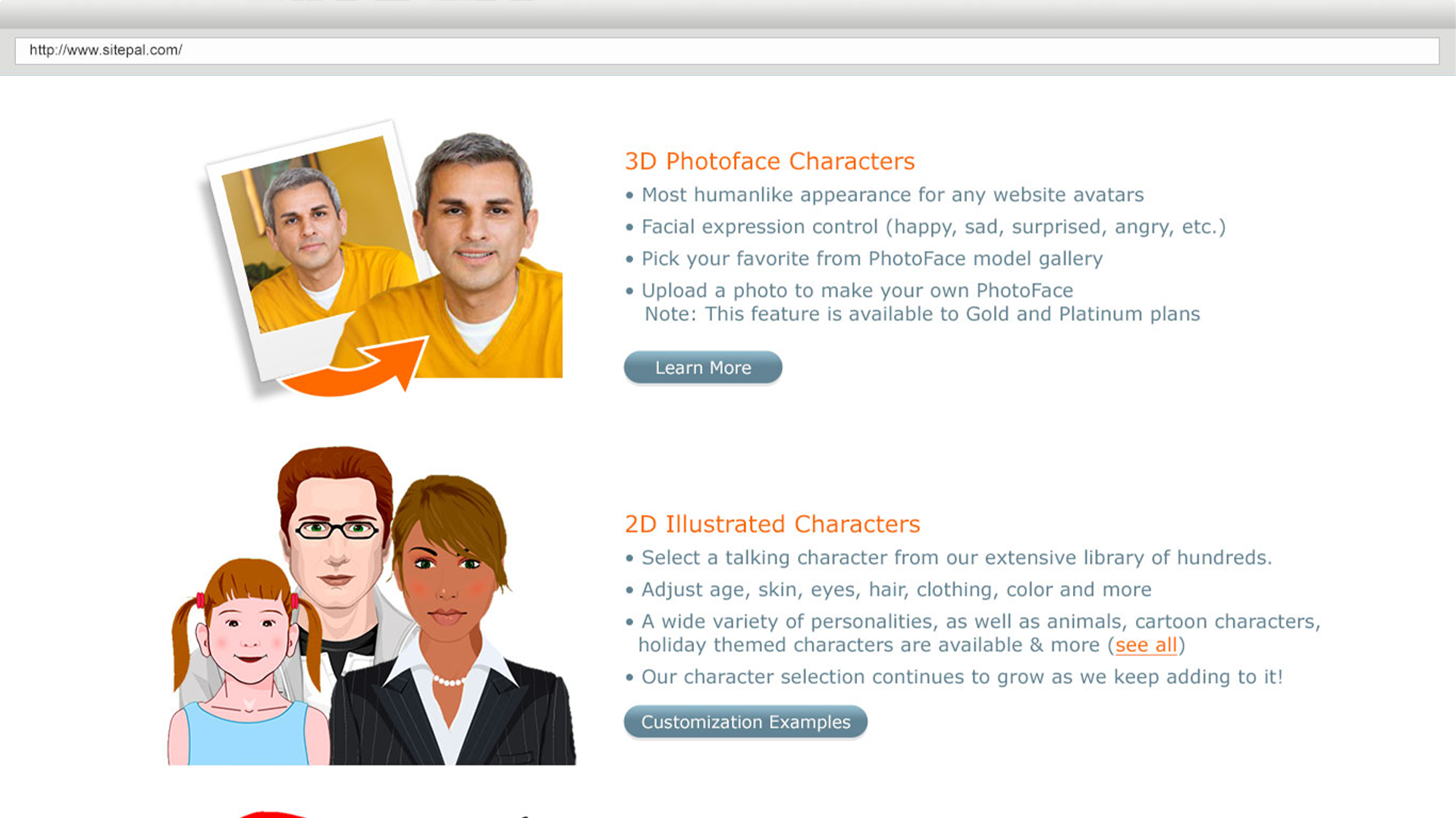 SitePal.com is a B2B platform for empowering a site's online communication, hosting custom and premade avatars, audios, and AI solutions.